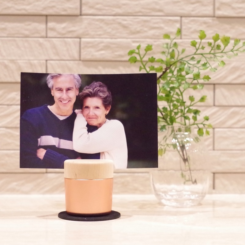メモリアルポットとフォトフレームが一緒になった、Sottoシリーズミニ骨壷 ピクチュアリ シリンダ ゴールド