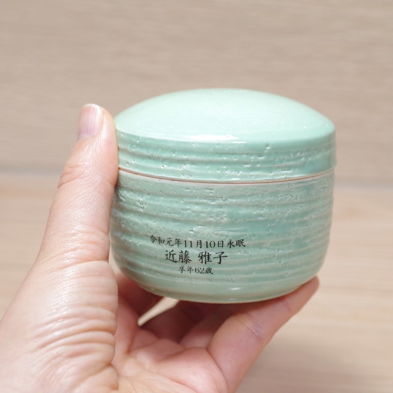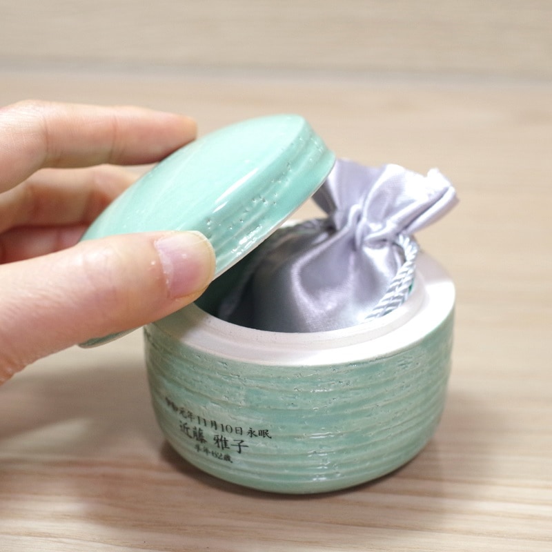 【手元供養】ミニ骨壷 [ここいろ/わかくさ Lサイズ] (納骨袋付) 信楽焼