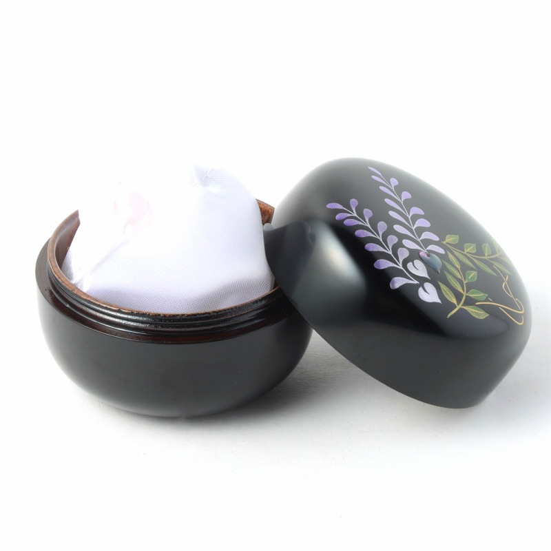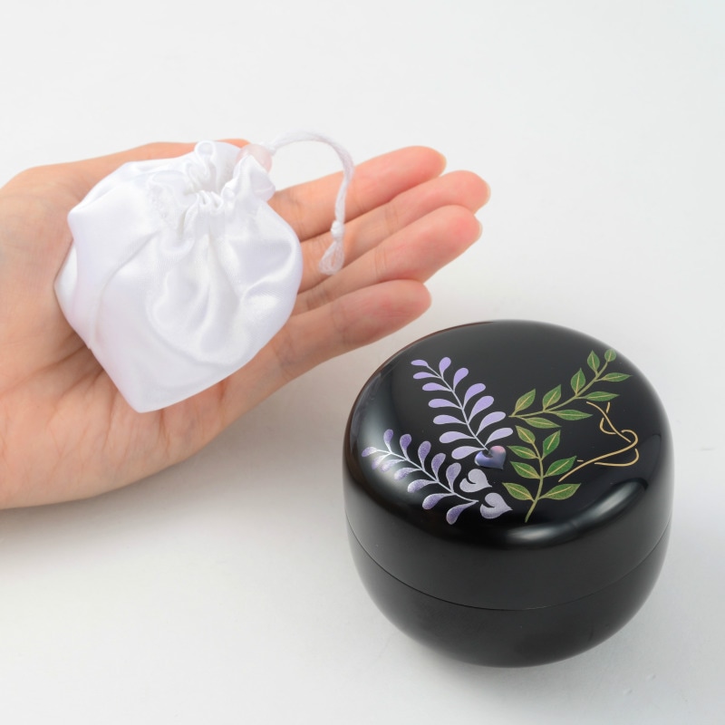 木製分骨ミニ骨壷【こころ・藤花(ふじはな)】モダンな現代蒔絵と螺鈿を施したネジ式漆塗りの日本製分骨用骨壷