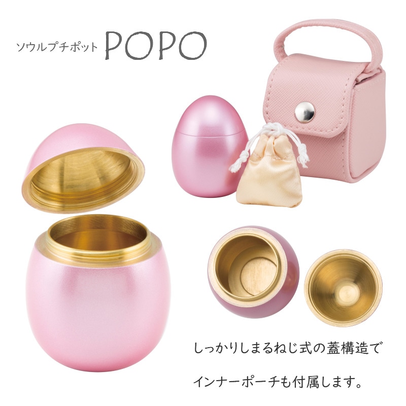 [ポポ・プリティピンク] 携帯用ポーチ付メモリアルボトル POPOポポ ミニ骨壷(骨壺)ペットのご遺骨にも