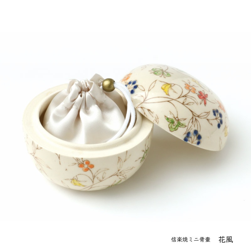信楽焼 総手書きミニ骨壷 おもかげシリーズ なでしこ あたたかみのあるご自宅用お骨壷 花が好きだったご家族に