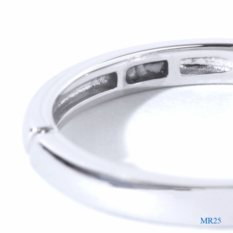 リングの内側の溝にお預かりしたご遺骨(耳かき1〜2さじ程度の量)を透明な特殊樹脂で液体から硬化させることにより貴金属と一体化させます。