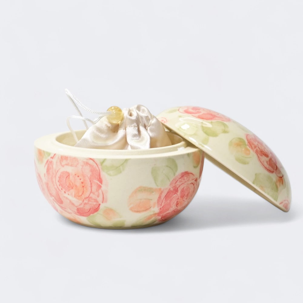 信楽焼 総手書きミニ骨壷 おもかげシリーズ なでしこ あたたかみのあるご自宅用お骨壷 花が好きだったご家族に