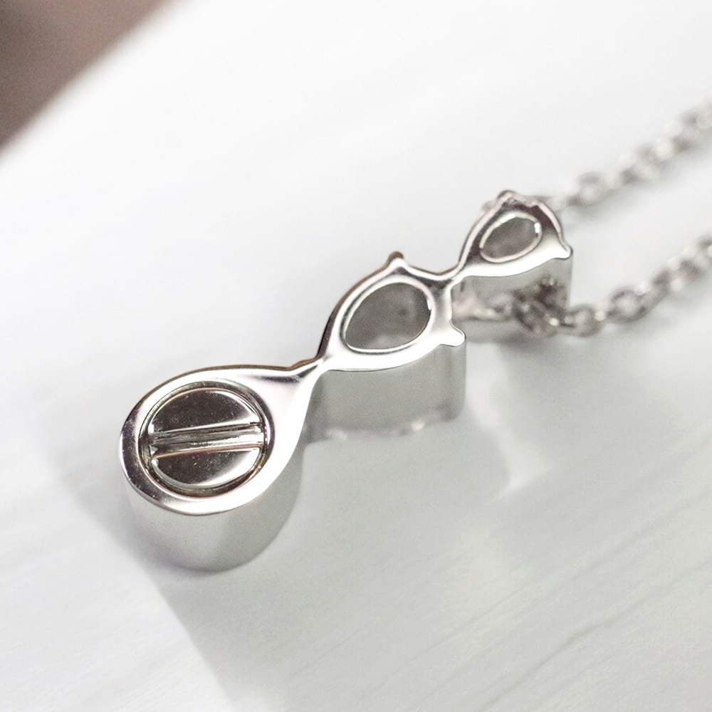 | | ネジを開閉してご遺骨を納めます | 納骨に必要なものは全て同封しております。 付属の黒い敷紙を敷いて、竹製のピンセットとロートを使いお米1粒〜2粒程度の小さなかけらを納めます。 納骨後はしっかりネジを締めてください。 胸元に大切な家族を感じることは、とても安心するとグリーフケアにつながっています。 |