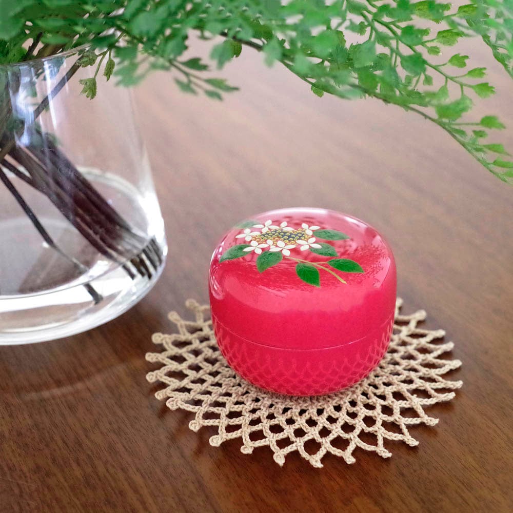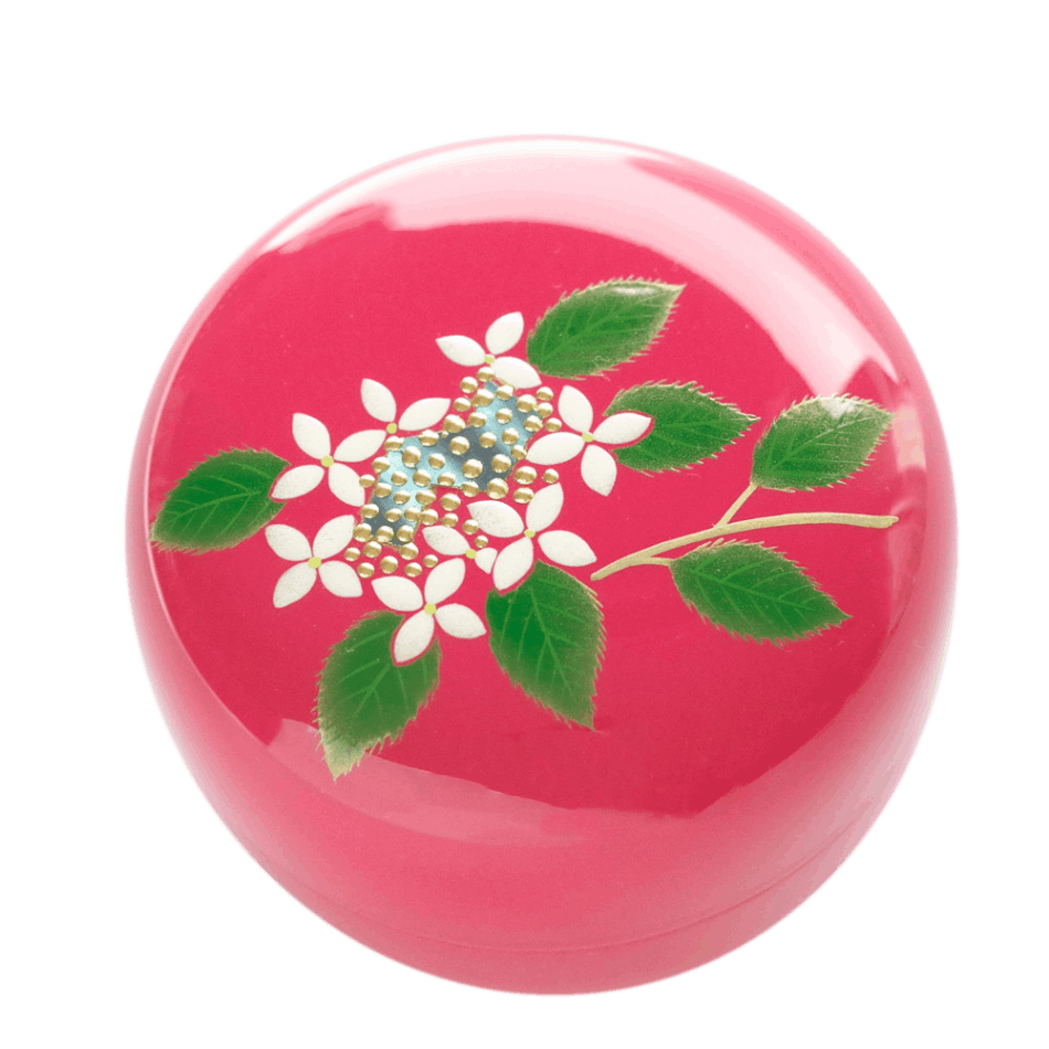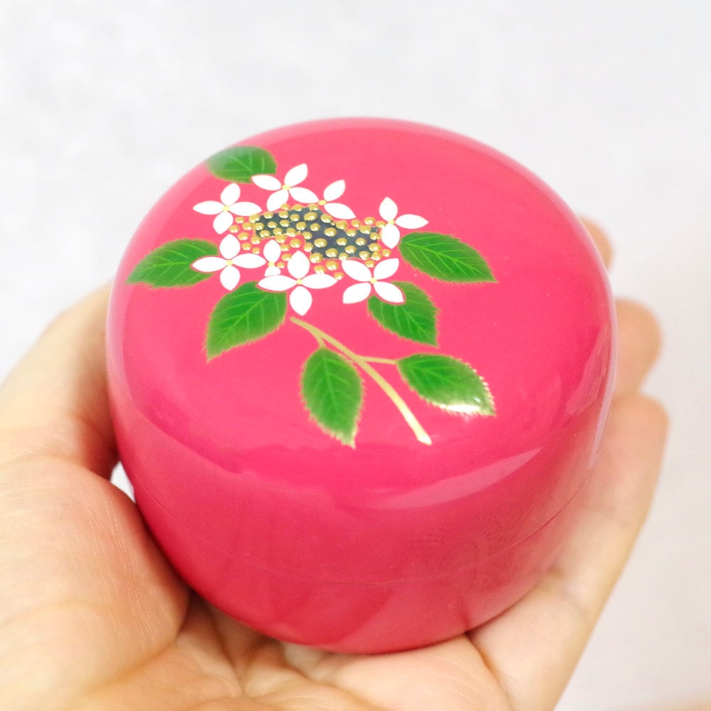 落ち着いた深みのあるピンクに白紫陽花の蒔絵を施しました。