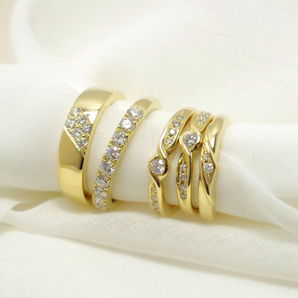 シンプルなリングに追加で宝石を表面や裏面に追加アレンジすることも可能です。