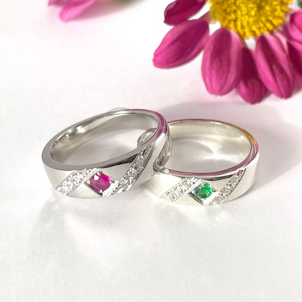 シンプルなリングに追加で宝石を表面や裏面に追加アレンジすることも可能です。