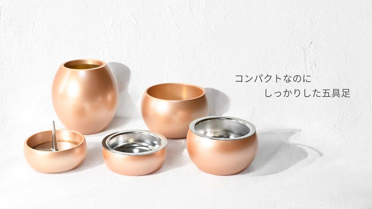 本格的なのにコンパクトで、どんな場所にも置きやすい五具足ミニまる5点セット。