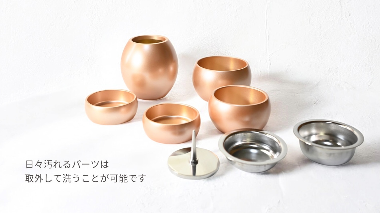 素材 | 真鍮製 (茶湯器と飯器の受け皿はステンレス製) |