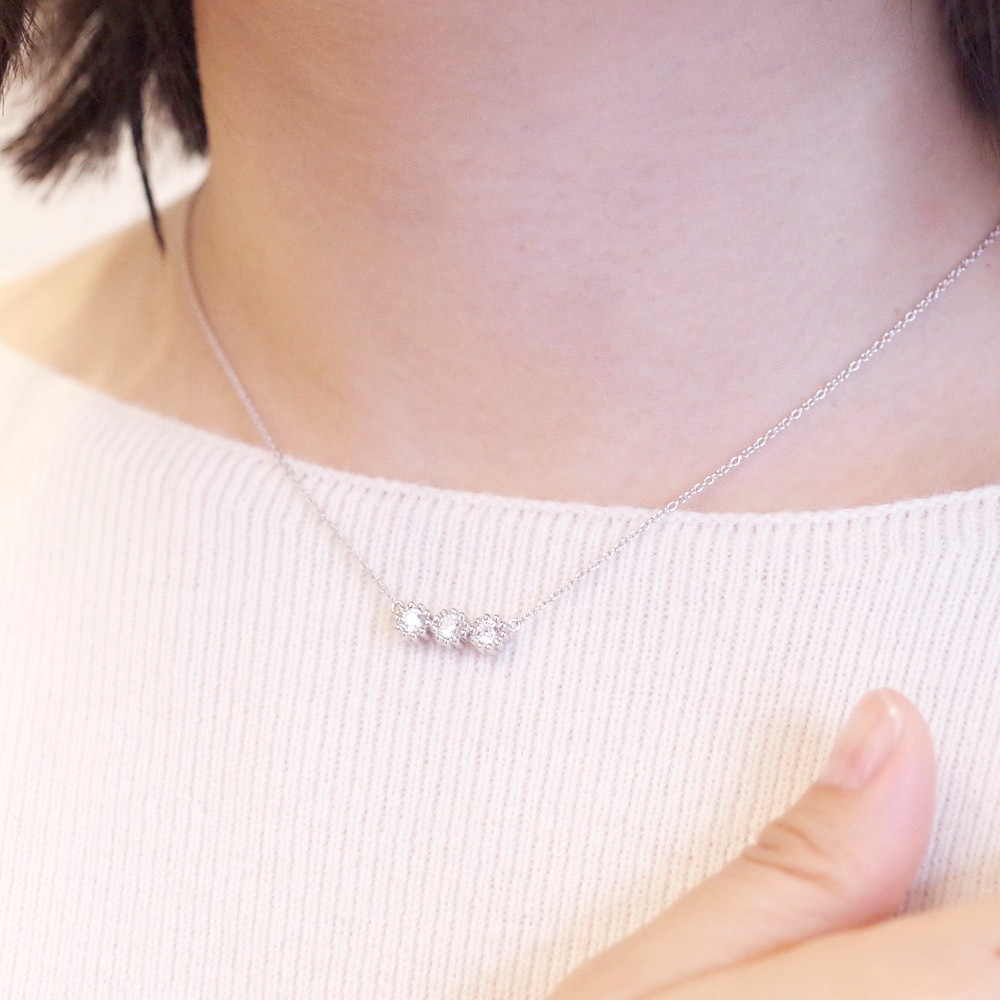 Pt900は90%がプラチナ。硬さを持たせるためにパラジウムなどの割金が含まれています。チェーンは丈夫さを増すためPt850が主流です。ブライダルジュエリーとして最も選ばれるプラチナは、本来の素材が白く、変色・変質しない希少価値のある素材です。長年の愛用でも、洗浄、磨きをすることで簡単に汚れを落とすことができ、金属アレルギーによる心配もないことも人気の理由です。