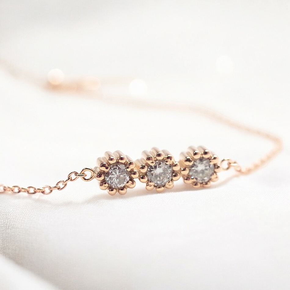 【MB02/ピンクゴールド】メモリアルブレスレット 完全防水樹脂埋封ジュエリー K10PG または K18PG ×誕生石3mm×3石