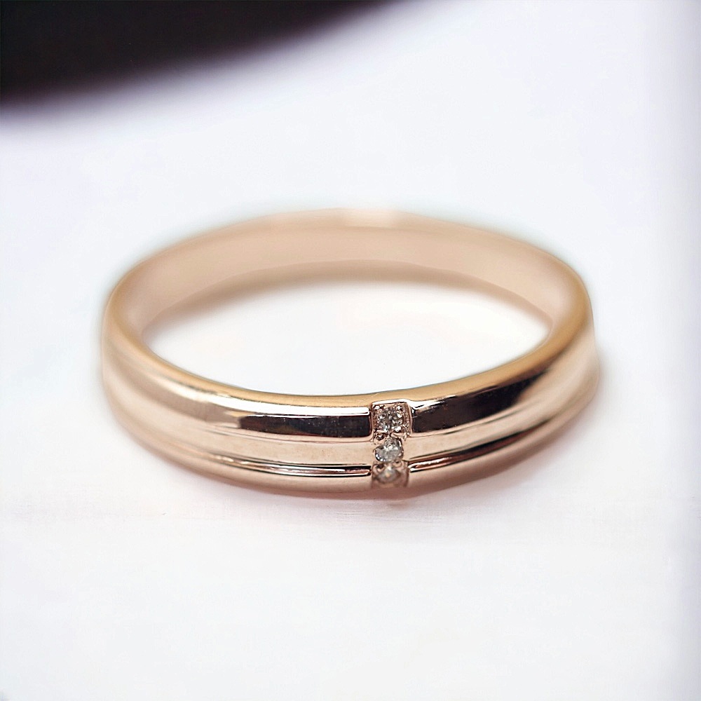 溝部分は艶消しを施しました。落ち着いたイメージのシンプルリングに2個のメレダイヤがアクセントになっています。 |