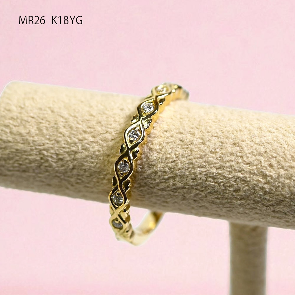 | デザイン | 編み込んだような堀のデザインの中に、ダイヤモンド7石を留めました。 指に着けるととても美しいです。 一般的な結婚指輪くらいのボリュームです。