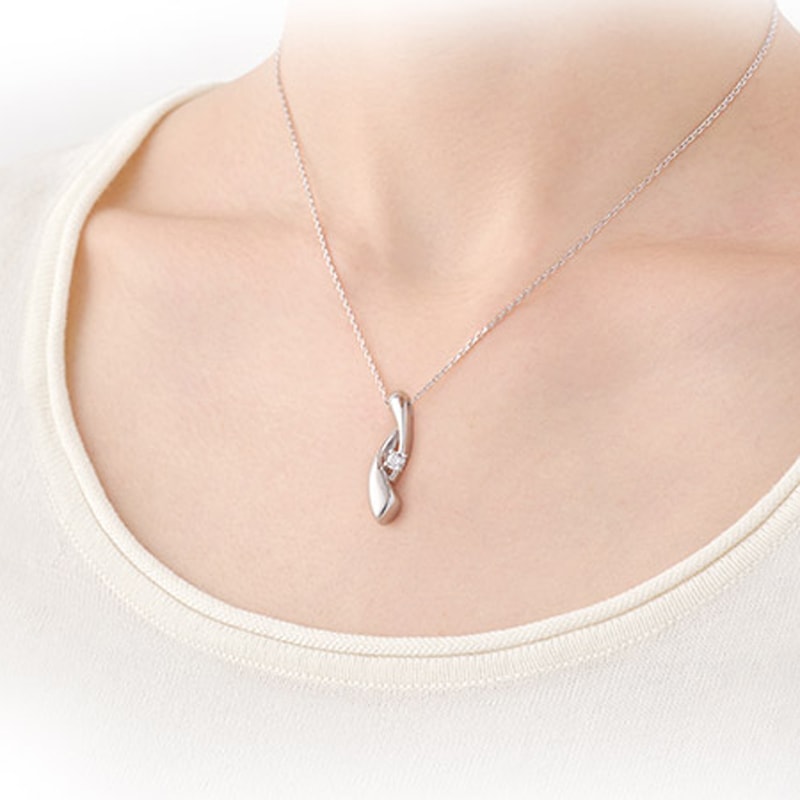 ◉ サイズ:H26.5 W7.5 D5.8 mm ◉ チェーン:40cm(アジャスターカン付) ◉ 宝石:シルバー製はキュービックジルコニア 貴金属製はダイヤモンド(0.14ct) ※ チェーンはスルータイプなのでご自身のチェーンとの交換も可能です