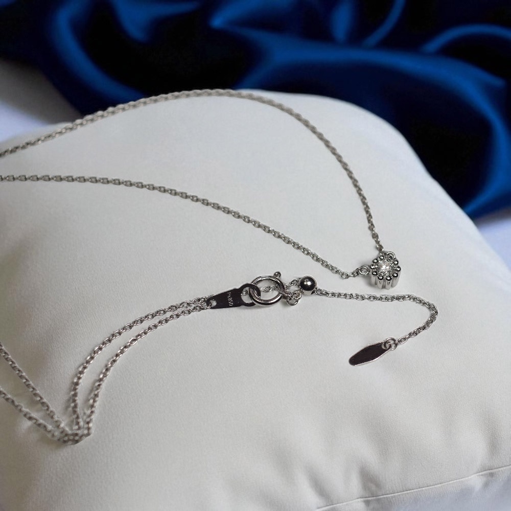 Pt900は90%がプラチナ。硬さを持たせるためにパラジウムなどの割金が含まれています。チェーンは丈夫さを増すためPt850が主流です。ブライダルジュエリーとして最も選ばれるプラチナは、本来の素材が白く、変色・変質しない希少価値のある素材です。長年の愛用でも、洗浄、磨きをすることで簡単に汚れを落とすことができ、金属アレルギーによる心配もないことも人気の理由です。