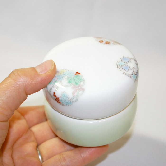 【骨壷】深川製磁 想い合子 姫丸紋(ひめまるもん) わかくさ ミニ骨壷・納骨袋付