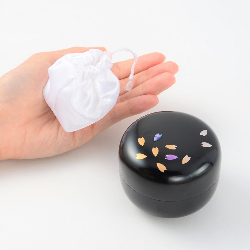 木製分骨ミニ骨壷【こころ・想桜(おもいざくら)】モダンな現代蒔絵と螺鈿を施したネジ式漆塗りの日本製分骨用骨壷