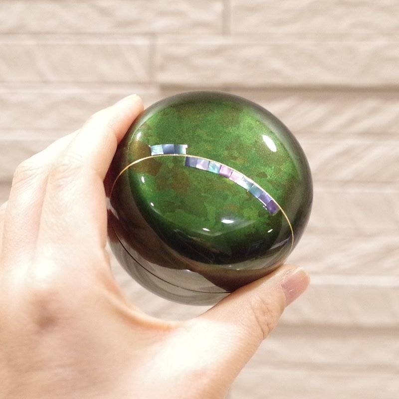 木製分骨ミニ骨壷【こころ・奏(かなで)エメラルドグリーン】モダンな現代蒔絵と螺鈿を施したネジ式漆塗りの日本製分骨用骨壷